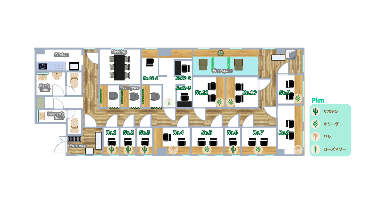 | №12-2 | - | 1名 | 30,000 | 固定席 | 空室 |